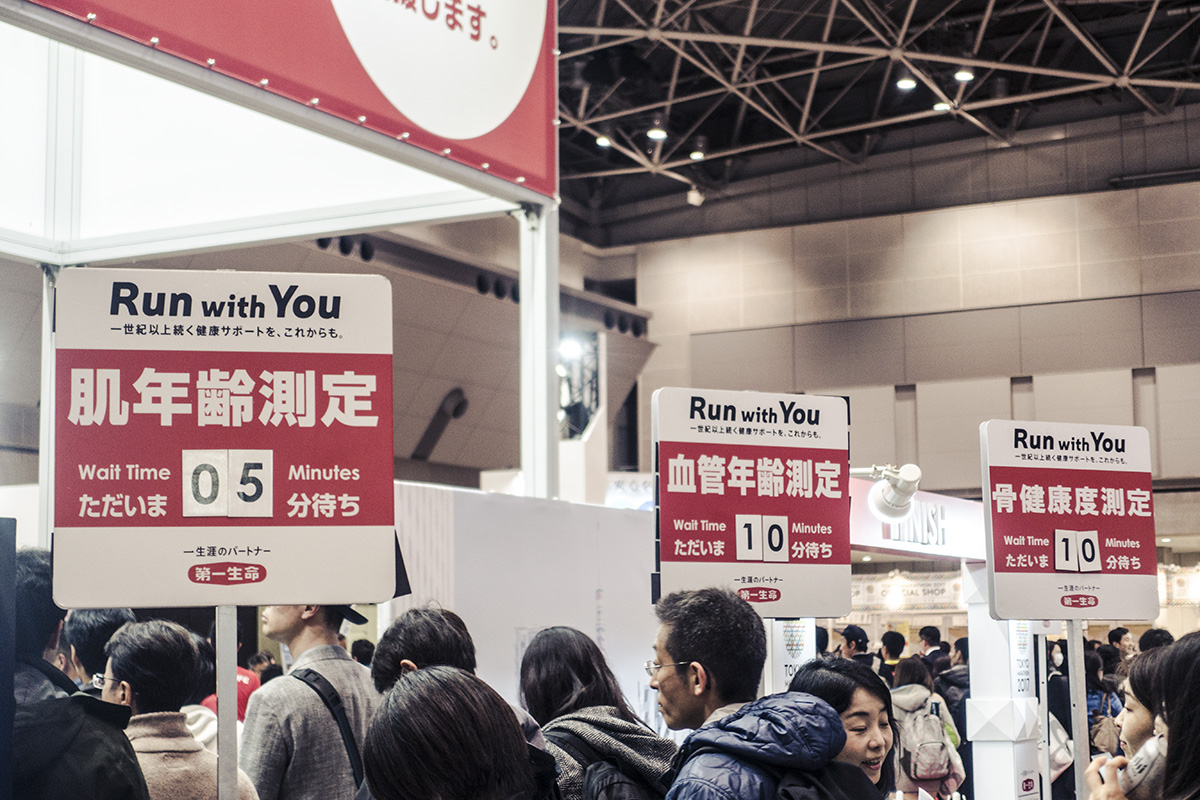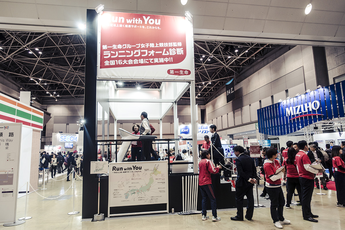 恒例のランニングフォーム診断、今年は「第一生命」が提供。『肌年齢測定』や『血管年齢測定』、『骨健康度測定』なども併設されているのが目新しさを感じました。