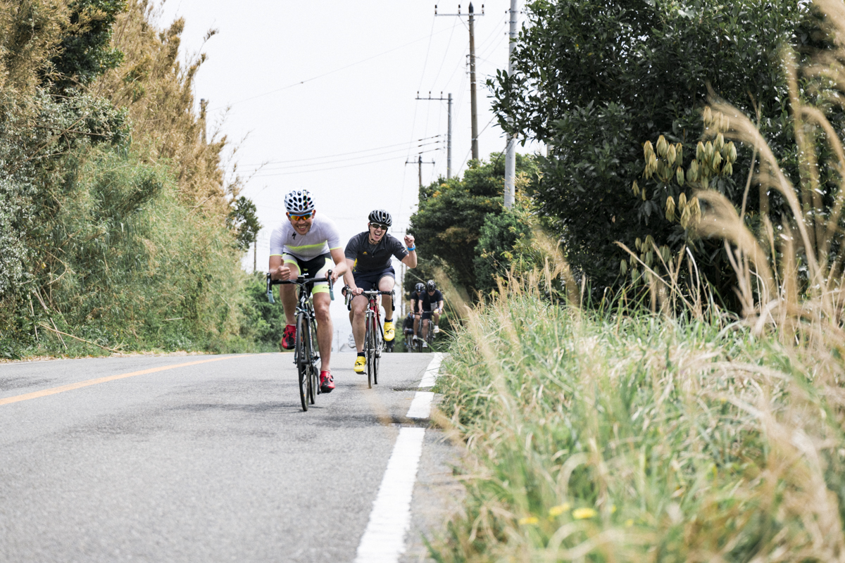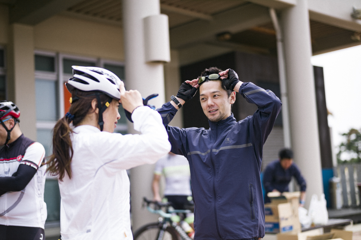 総監督の大西勇輝さんのリードで合宿の心構えを確認し、軽く体操をしたら、まずは40kmのバイクライドから合宿一日目がスタート。実はロードバイクに乗り始めてまだ最長20kmしか走ったことがないのです。本番と同じ40kmチャレンジ、いきなり不安です。